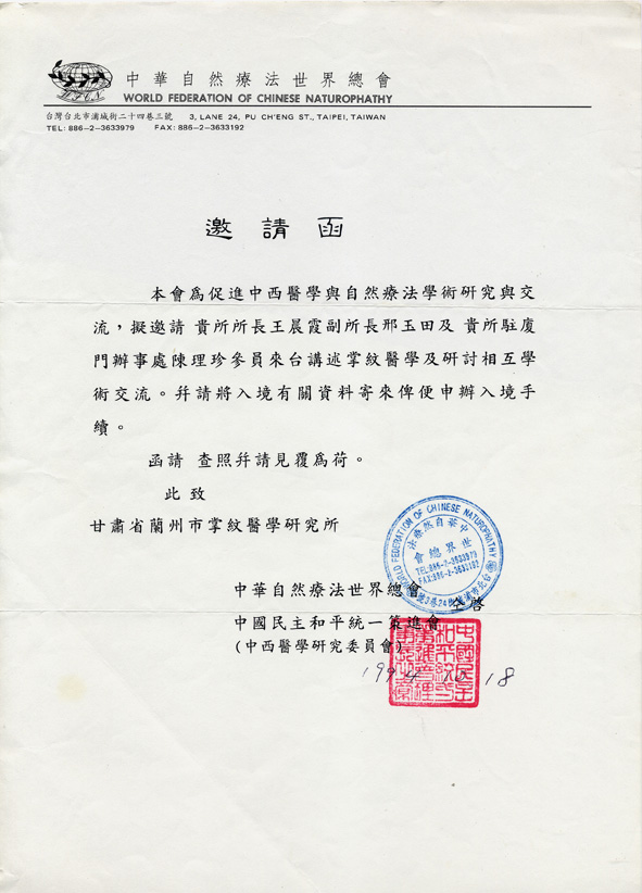 1994年8月28日——11月5日,王晨霞应邀在厦门莲花医院讲学诊病。