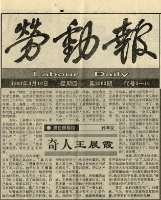 · 1994年3月10日《劳动报》刊登“奇人王晨霞”