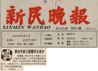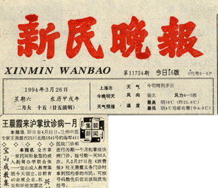 · 1994年3月26《新民晚报》王晨霞来泸诊病一个月
