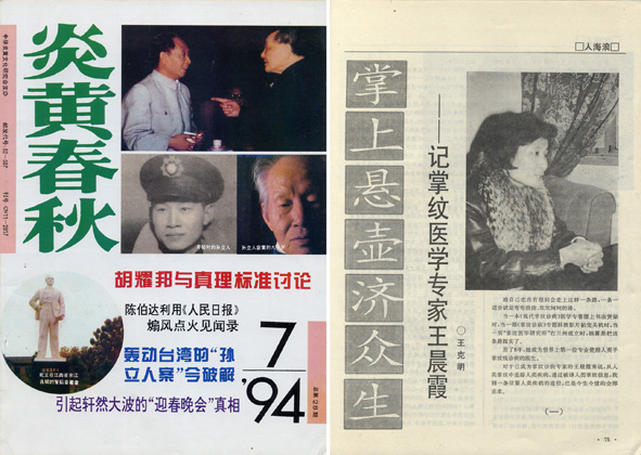 1994年第七期《炎黄春秋》“掌上悬壶济众生”。