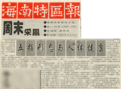 1995年11月18日第848期《南海特区报》刊登“五指形态与身体健康”