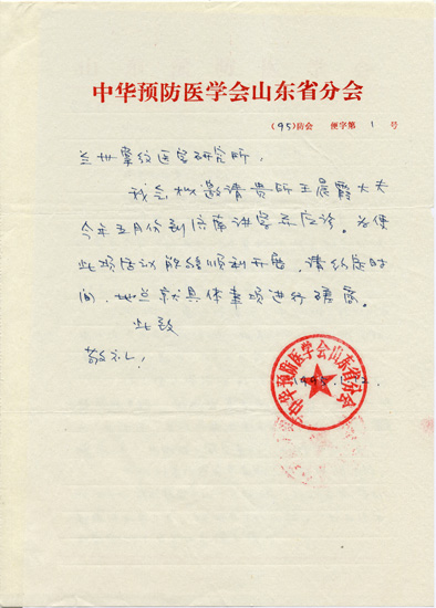 · 1995年1月12日中华预防医学会山东分会邀请王晨霞所长讲学。
