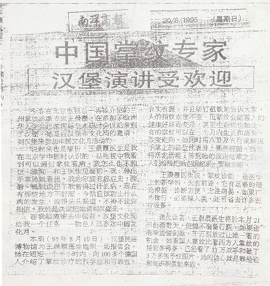 · 1995年8月20日《南洋商报》“中国掌纹专家汉堡演讲受欢迎”