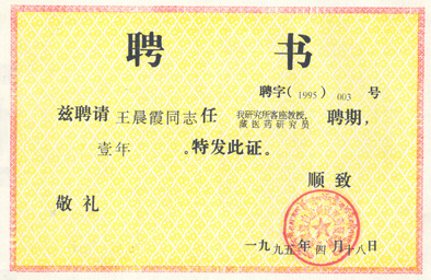 1995年4月18日,甘南藏族自治州藏医药研究所聘请王晨霞为客座教授。