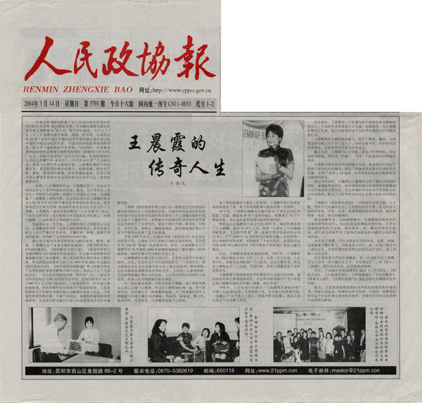 2004年3月14日《人民政协报》B4版《王晨霞的传奇人生》