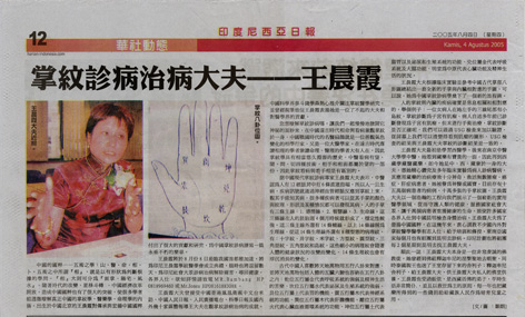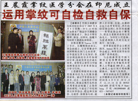 2005年8月8日“中国王晨霞掌纹印度尼西亚医学协会”成立
